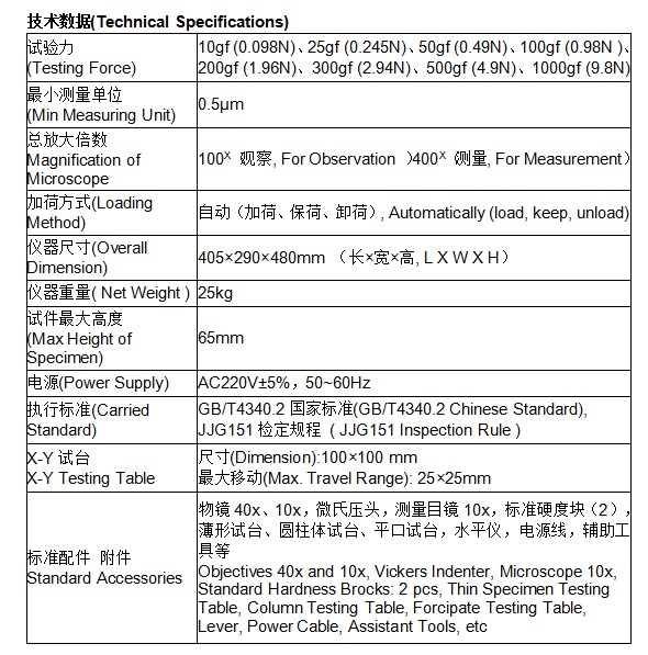 HV-1000型显微硬度计是基本型的显微硬度计,该机采用LCD显示屏,通过操作面板可对硬度标尺HV或HK各档试验力保荷时间进行选择,光源亮度可作无级调节。操作时,可将目镜测得的D1,D2值直接输入后,硬度值即在LCD显示屏上直接显示。