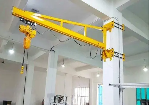 墙壁式旋臂起重机(墙壁吊)由支架、旋臂装置及环链电动葫芦等组成。悬臂固定在墙壁或水泥柱上,可根据用户需求进行回转。回转部分分为手动回转和电动回转。环链电动葫芦安装在悬臂轨道上,用于起吊重物。